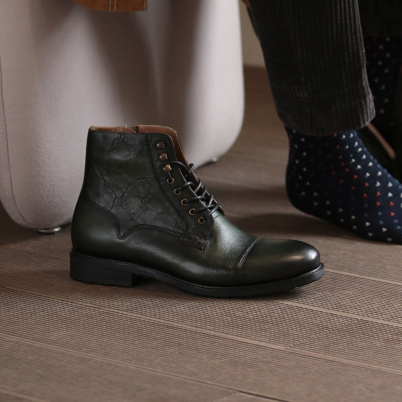 British Style Men's Mid-high Leather Martin Boots