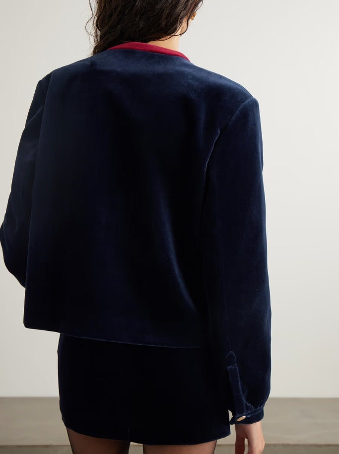 Contrast Color Jacket & Velvet Mini Skirt Set