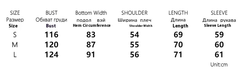 - Sizes: S, M, L