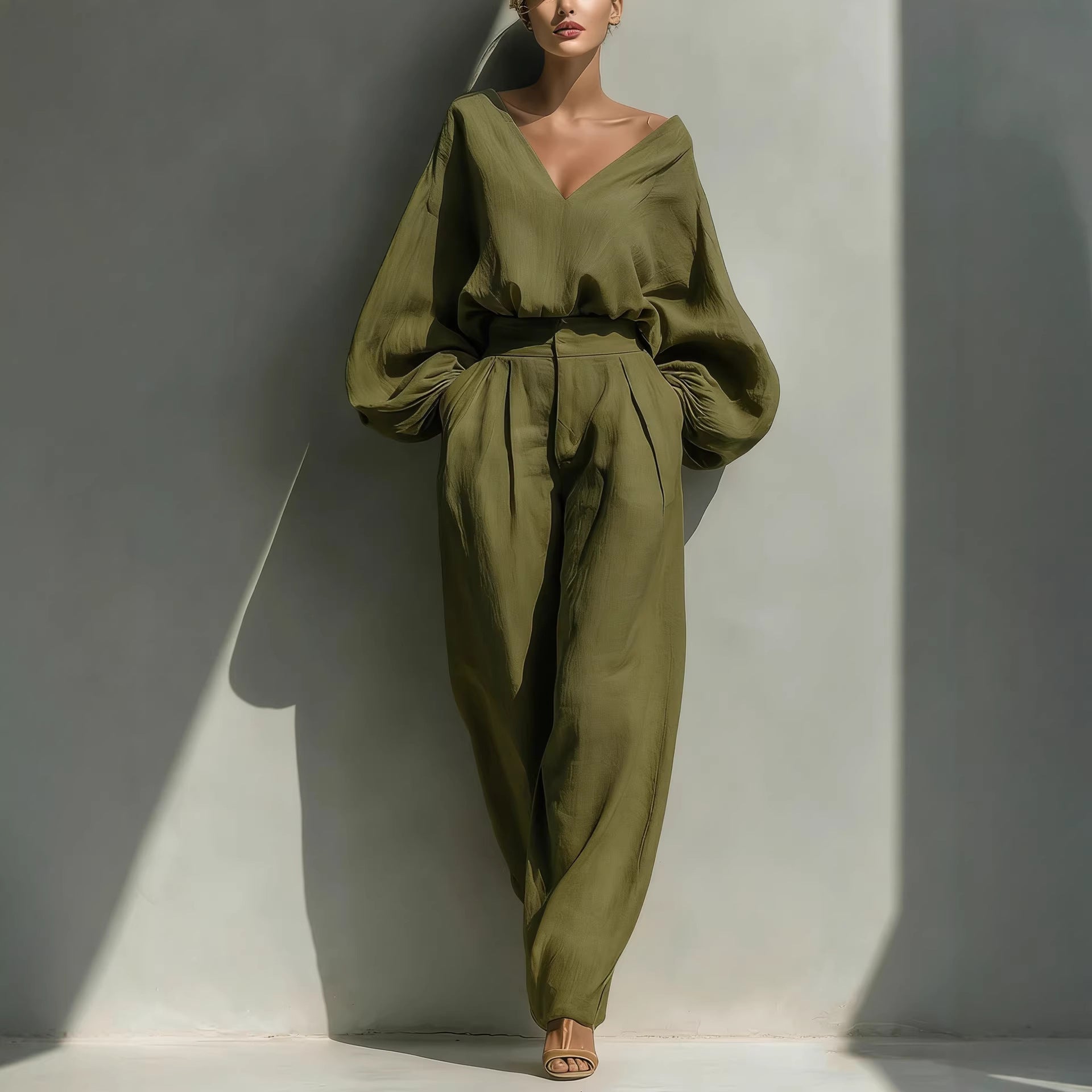 Long-sleeve Loose-fitting Trendy Unisex Retro Cotton-linen Set