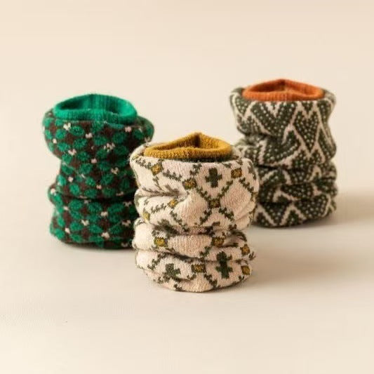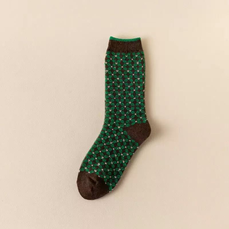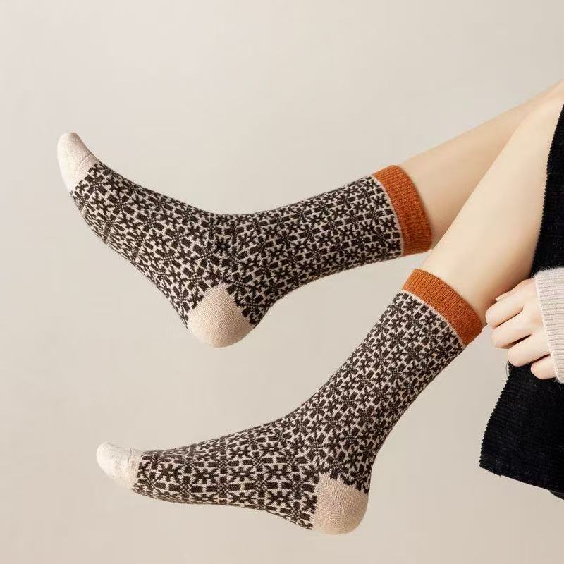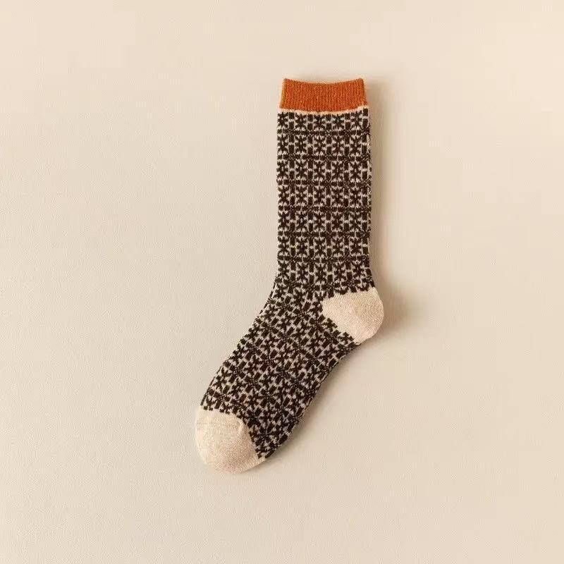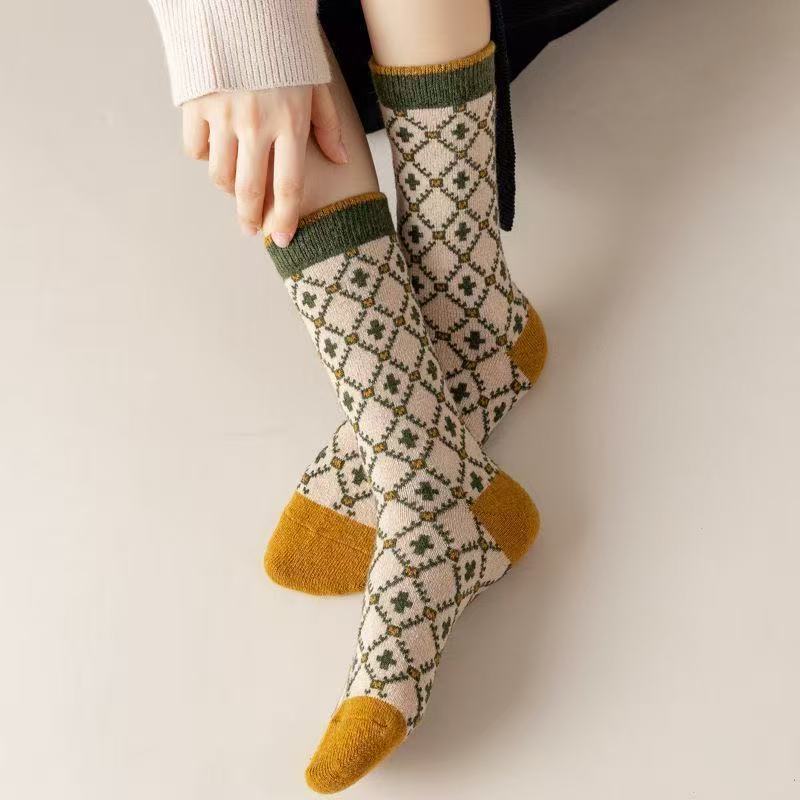 Women's Mid-calf Pure Cotton Warm Double-knit Retro Ripple Socks Autumn Stack Socks
